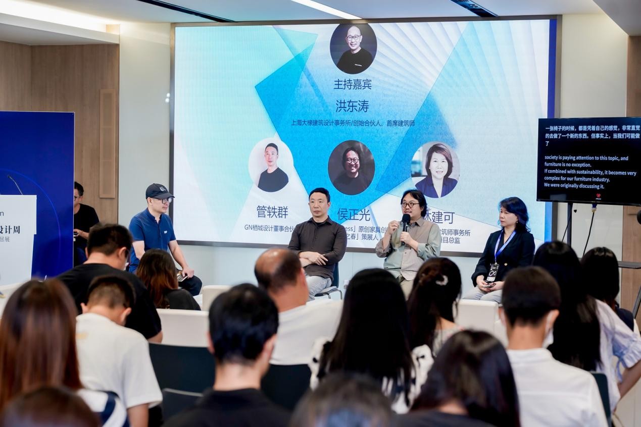 在最后的圆桌对话环节,管轶群探讨了城市更新与养老生活的空间实践;林建可分享了医疗建筑在环境、人文与运营平衡中的独特挑战;侯正光介绍了多少MoreLess在家具设计中的可持续材料与生产创新。三位嘉宾均阐述了各自领域如何兼顾可持续性与创新性。